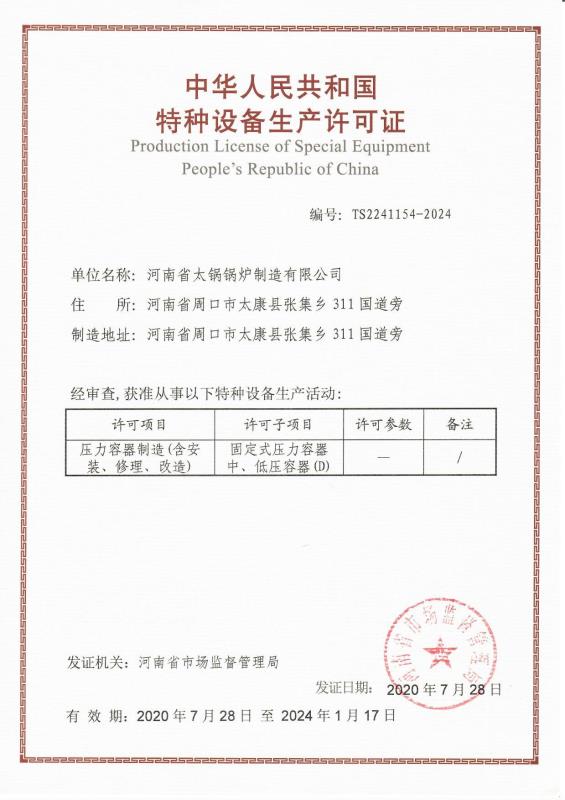 河南省太鍋鍋爐制造有限公司(原河南省太康鍋爐廠始建于1976年)始建于70年代初,經(jīng)40多年的艱辛探索,靠科技興業(yè),走科學(xué)管理之路,現(xiàn)已發(fā)展成為承接制造、安裝、設(shè)計大、中型供熱系統(tǒng),生產(chǎn):SZS燃油燃?xì)庹羝仩t、燃煤蒸汽鍋爐、燃油鍋爐、燃?xì)忮仩t、電加熱鍋爐、生物質(zhì)鍋爐、茶水鍋爐、有機(jī)熱載體鍋爐、熱風(fēng)鍋爐,蒸壓釜、燃油蒸汽鍋爐、燃?xì)庹羝仩t、燃油熱水鍋爐、燃?xì)鉄崴仩t并承擔(dān)安裝120噸熱水鍋爐、蒸汽鍋爐,生物質(zhì)鍋爐,加工制造一、二類蒸壓釜、壓力容器,化工機(jī)械的省一級**企業(yè)。